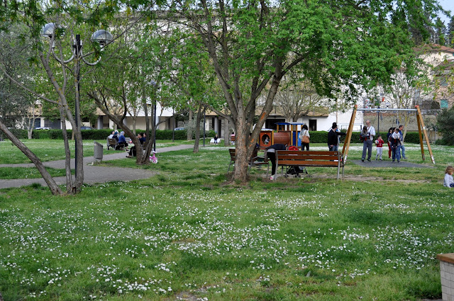 W drodze do szkoły i do Certaldo zawsze mijamy pasące się konie, osły, są też młode kaczuszki, a dwa razy spotkaliśmy szwendające się po drodze owce!